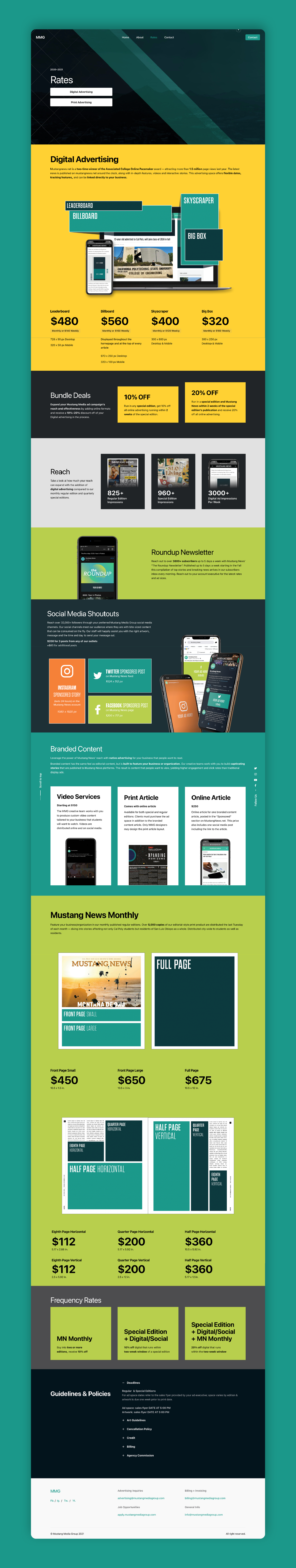 As the Advertising Design Manager, I had a three-month turnaround to create the 2020-2021 Media Kit for Mustang Media Group. My goal was to showcase more of the company's social and digital offerings in response to the shift toward an online environment.